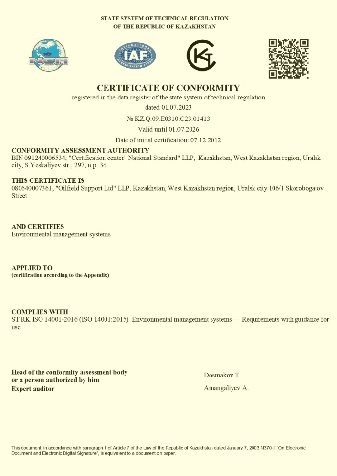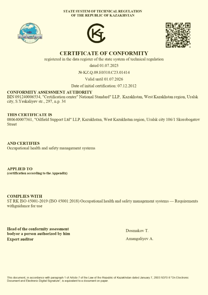 OFS has established and maintains a QHSE Management System certified in compliance to four international standards ISO 9001; ISO 14001 and ISO 18001.